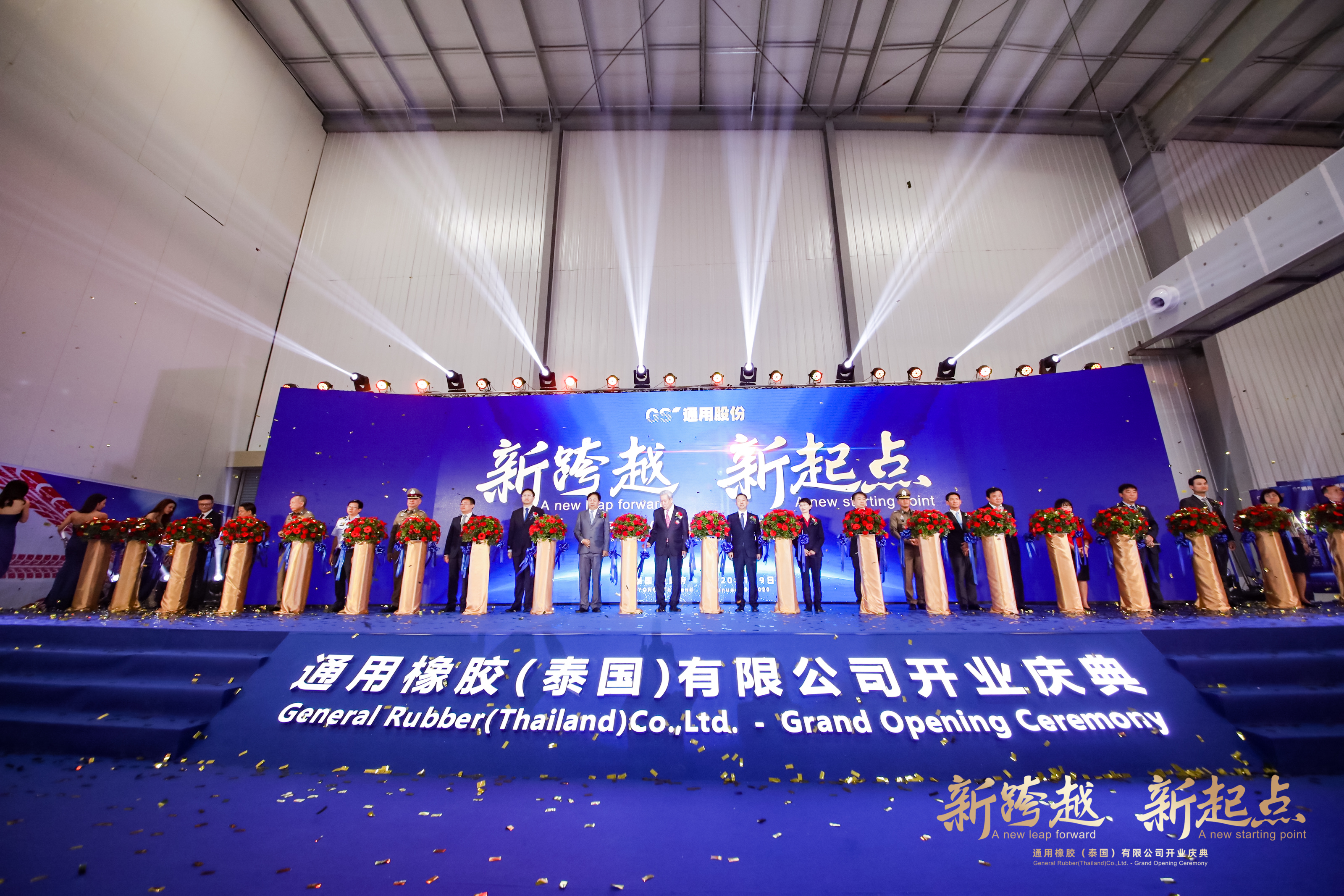 2020年1月9日,新跨越 新起點(diǎn)——通用橡膠(泰國(guó))有限公司開(kāi)業(yè)慶典在泰國(guó)羅勇府隆重舉行。泰國(guó)前副總理披尼、中國(guó)駐泰國(guó)大使館參贊李