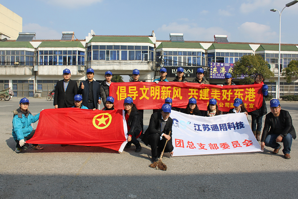 2012年12月11日中午,通用股份團總支組織二十多名青年‘環(huán)保衛(wèi)士’利用午休時間開展“倡導文明建設,共建美麗東港”活動?!h(huán)保衛(wèi)士們’從