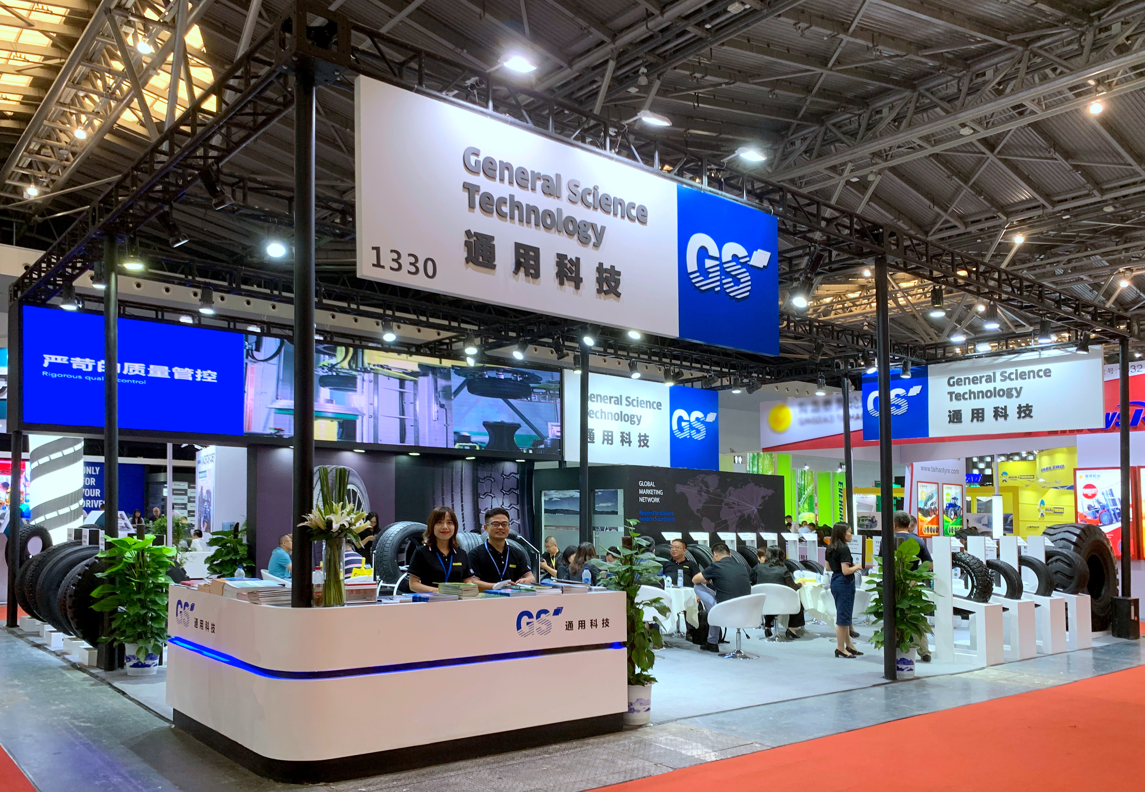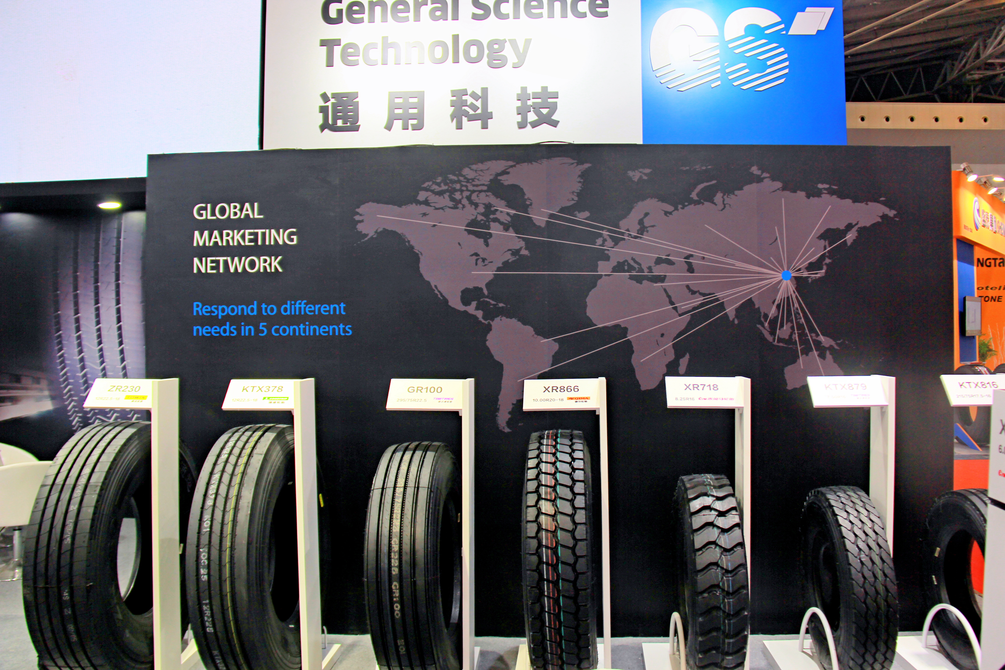本次展會,通用股份展臺設(shè)計以標(biāo)志性品牌顏色——藍(lán)色為主題調(diào),展廳整體色系統(tǒng)一、層次鮮明,凸顯了通用股份科技、創(chuàng)新、未來的產(chǎn)品設(shè)計理念,向用戶展示了通用始終以提升創(chuàng)新能力為核心,大力推進(jìn)智能制造,打造世界一流民族輪胎品牌的發(fā)展愿景。