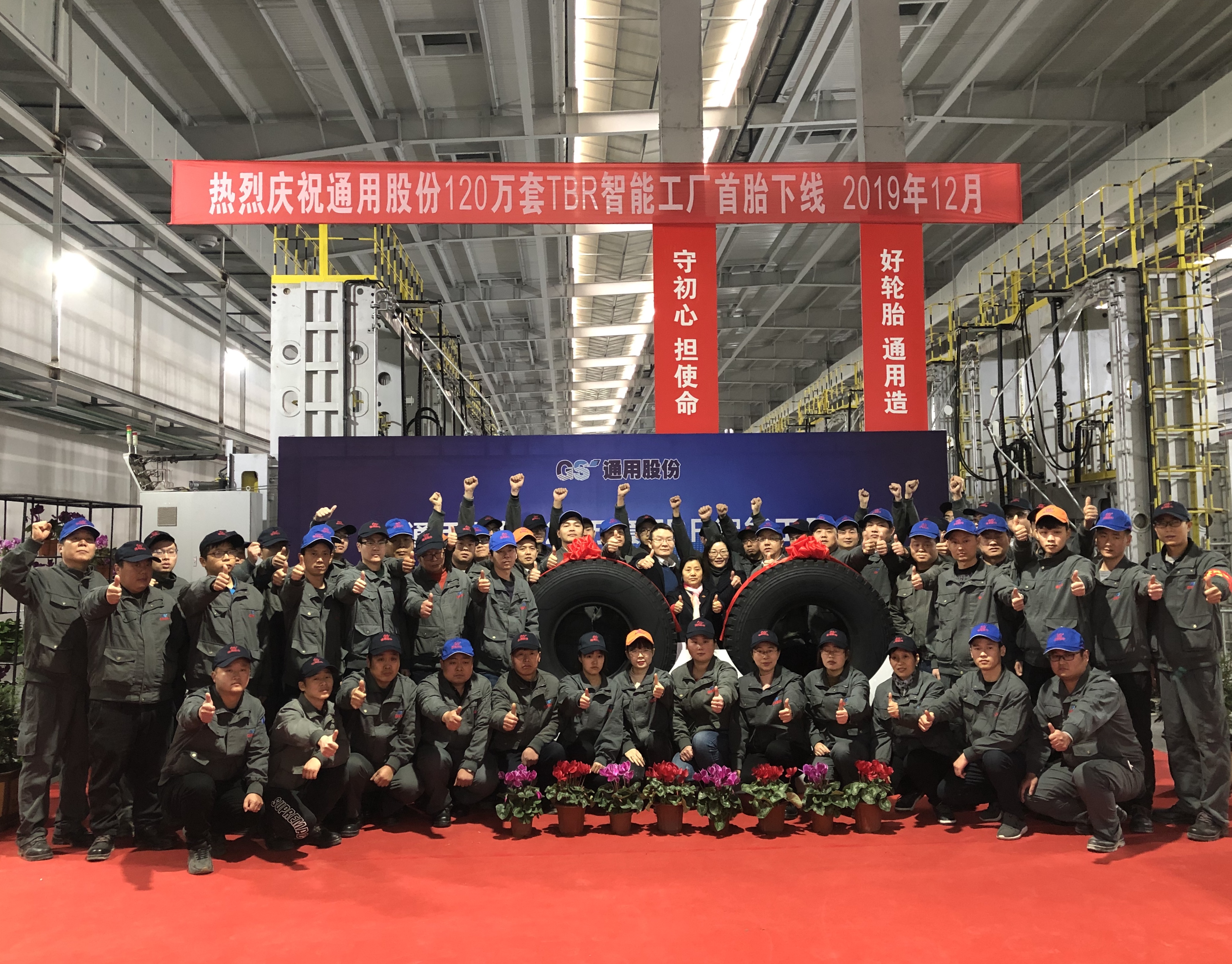 12月27日上午,通用股份120萬套TBR智能工廠首條全鋼子午線輪胎正式下線。下線首胎為通運 12.00R20—XR856。通用股份董事長顧萃,常務副總經理程金元、生產板塊總經理虞秀鳳等領導出席了本次儀式。