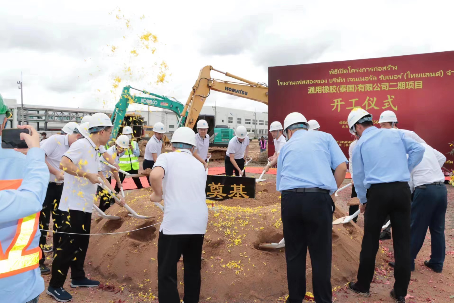 隨著各位領(lǐng)導共同完成“第一鏟土”,現(xiàn)場禮花滿天、禮炮齊鳴,奠基儀式圓滿落成,標志著通用橡膠泰國公司二期項目正式起航。