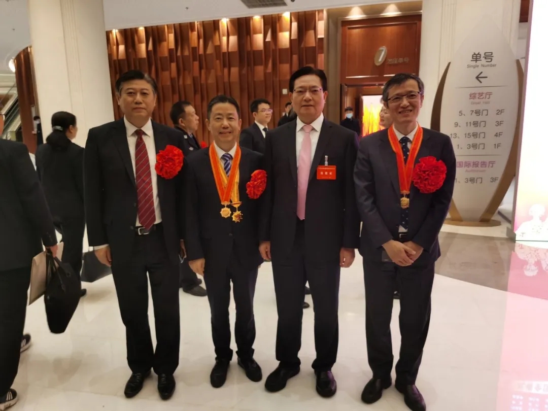 無錫市委書記黃欽(左三)帶領(lǐng)無錫市3名國(guó)家級(jí)榮譽(yù)代表,參加江蘇省新冠肺炎疫情表彰大會(huì),從左至右分別為:“全國(guó)抗擊新冠肺炎疫情先進(jìn)集體”獲得者,無錫市第五人民醫(yī)院黨委書記、院長(zhǎng)魯曉杰(左一);“全國(guó)抗擊新冠肺炎疫情先進(jìn)個(gè)人”“全國(guó)優(yōu)秀共產(chǎn)黨員”兩項(xiàng)榮譽(yù)獲得者,紅豆集團(tuán)黨委書記周海江(左二);“全國(guó)抗擊新冠肺炎疫情先進(jìn)個(gè)人”獲得者,無錫市人民醫(yī)院副院長(zhǎng)、胸外科主任、主任醫(yī)師陳靜瑜(右一)。