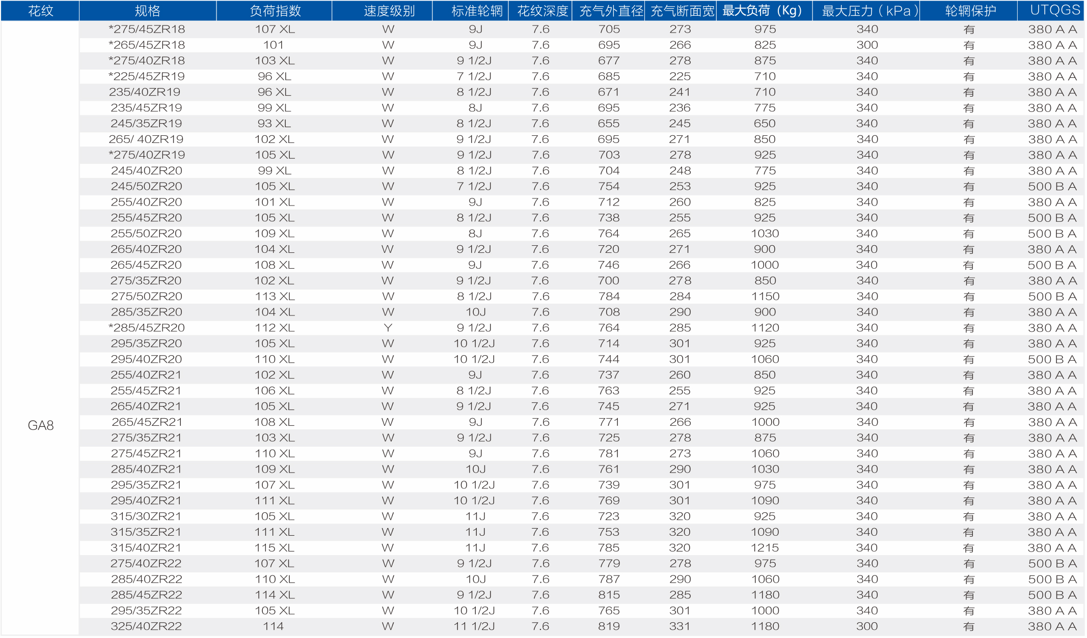 Rking GA8是一款靜音、舒適、操控穩(wěn)定性兼具的輪胎產(chǎn)品。胎面采用先進(jìn)的白炭黑配方體系和煉膠工藝,提升輪胎干濕地抓地性能。優(yōu)化的多節(jié)距花紋塊周向排布設(shè)計(jì),有效降低行駛噪音。