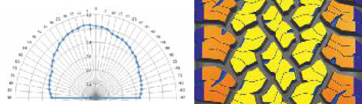 通過(guò)計(jì)算機(jī)仿真優(yōu)化,優(yōu)化各花絞塊的強(qiáng)度各花紋塊堅(jiān)實(shí)有力,可以應(yīng)對(duì)各種嚴(yán)苛環(huán)境保證輪胎的牽引能力;